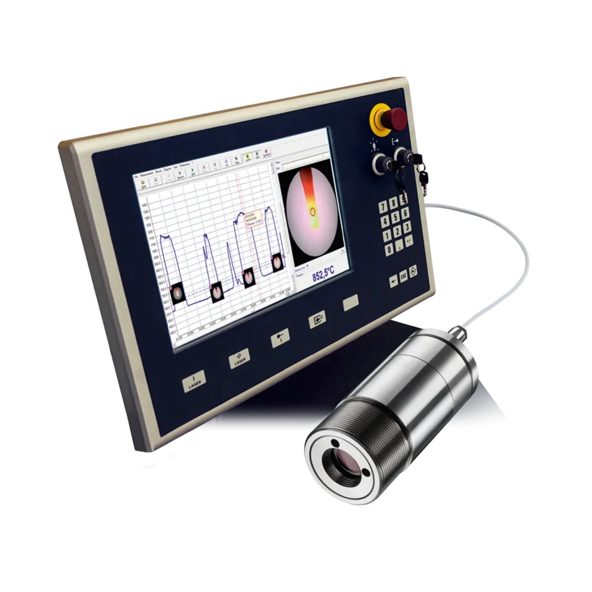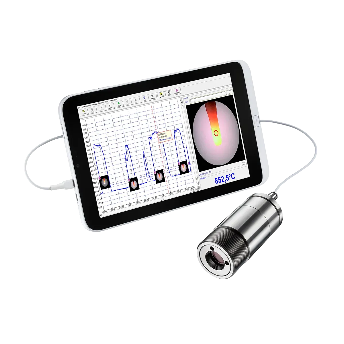 The CSvideo 2M series by Optris integrates non-contact temperature monitoring in industrial settings with video surveillance, ideal for scenarios where direct contact is impractical. Featuring integrated video sighting, these pyrometers facilitate precise aiming, especially in challenging environments or at extreme temperatures. The parallel use of video sighting and red laser crosshair simplifies sensor alignment, streamlining setup processes for efficient and accurate measurements.
