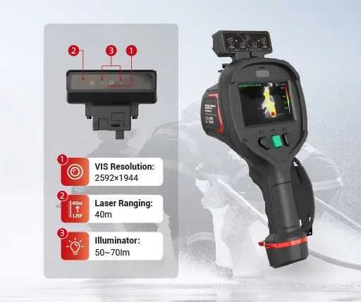 Equipped with a multi-functional VIS module, PR II Series assists in visible-light observation and auxiliary lighting, but also precisely gauge the target distance through laser rangefinder, enhancing operational efficiency in nighttime or low-light scenarios.
