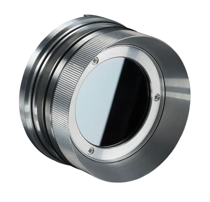 The protective window for CoolingJacket Advanced or the Outdoor Protective Housing is designed to shield infrared imager and pyrometer optics from dust and dirt. These IR transmissive windows are available for the CoolingJacket Advanced and for the Outdoor Protective Housing with a diameter of 50.8 mm x 3 mm and the air purge laminar systems with a size of 67 mm x 3 mm. Material options include Germanium for LT, G7, and P7 bandwidth, Zinc-Sulfide for LT, G7, and P7, Silicon for 4M, Borofloat for 05M, 08M, and 1M, and Sapphire for 05M, 1M, 2M, 3M, MT, F2, F6, and G5.
