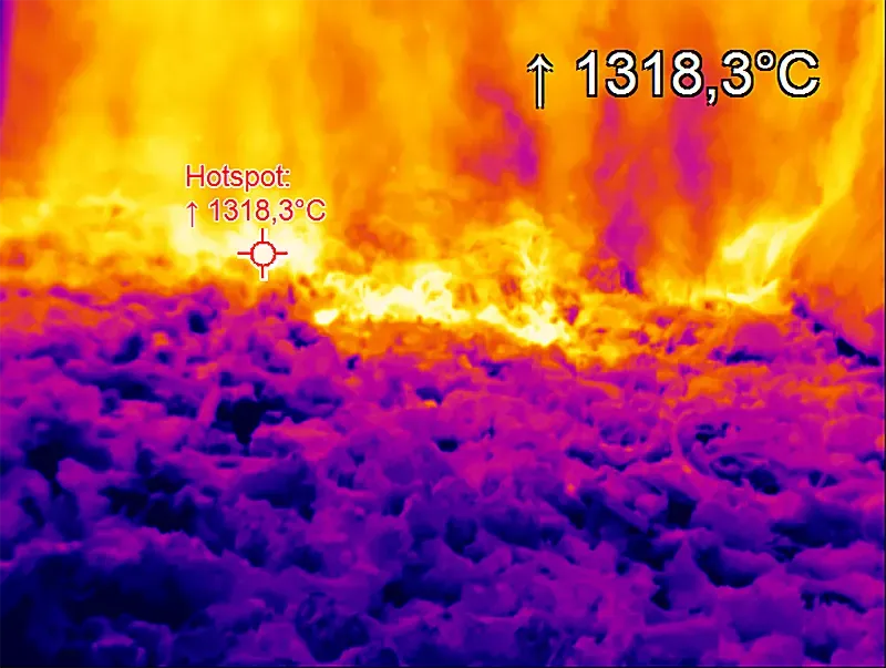 Designed and built in Germany, the Xi 320 MT infrared camera, which measures through flames, combines innovation, precision, and durability in a compact design. The rugged IP67-rated housing resists water, dust, and heat. Therefore, the thermal camera is ideally suited for use in combustion chambers, kiln walls, flame heating, or reactor vessels. Because it uses uncooled microbolometer technology, the thermal camera operates maintenance-free and remains reliable for continuous use.